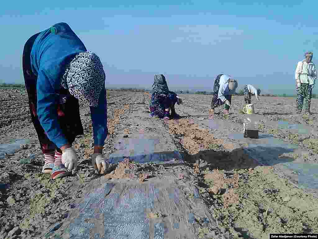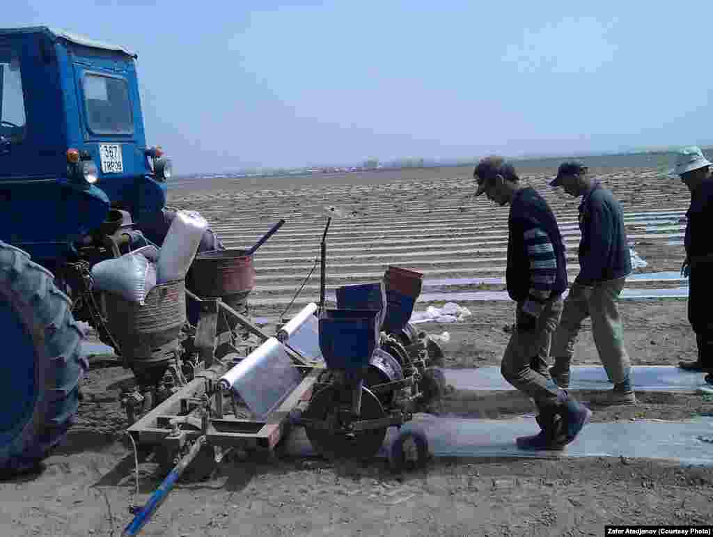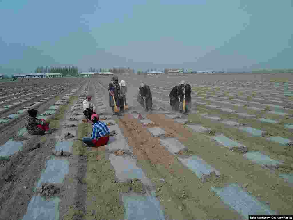 На юге Кыргызстана началась активная посевная хлопка. Фотографии Зафара Атаджанова, присланные на конкурс "Азаттыка".