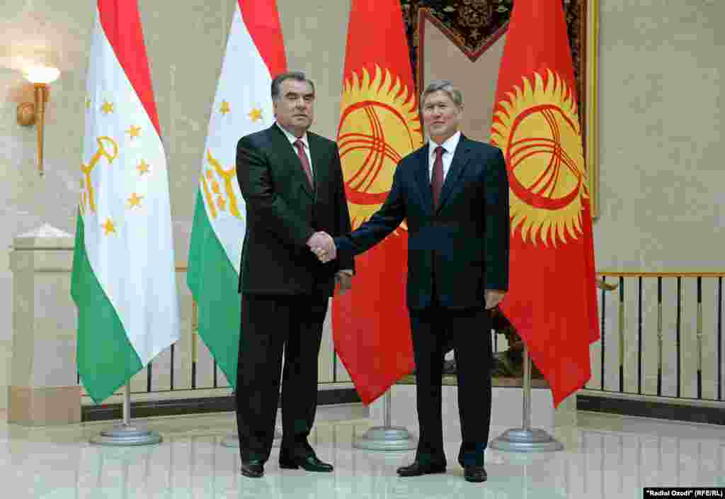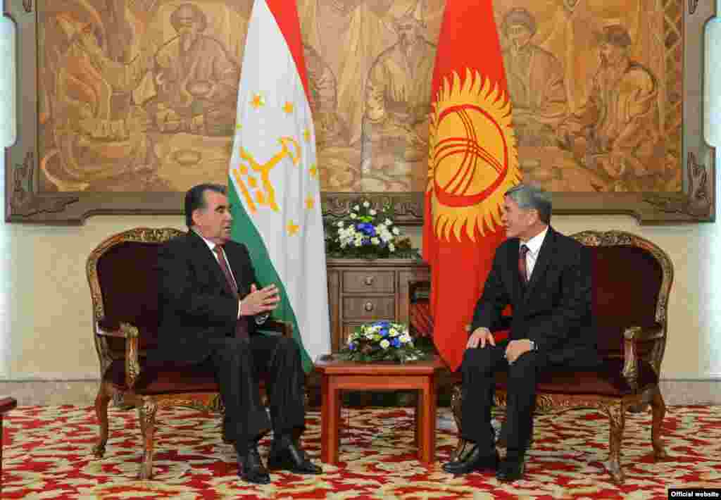 Президент Таджикистана Эмомали Рахмон прибыл в Бишкек с официальным двухдневным визитом. Сегодня в государственной резиденции «Ала-Арча» Рахмона принял глава КР Алмазбек Атамбаев. После двусторонней встречи пройдет первое заседание кыргызско-таджикского межгосударственного совета. Ожидается подписание двусторонних документов и пресс-конференция для журналистов. Фотографии пресс-служб президента и правительства КР. "Азаттык", Кыргызская служба РСЕ/РС