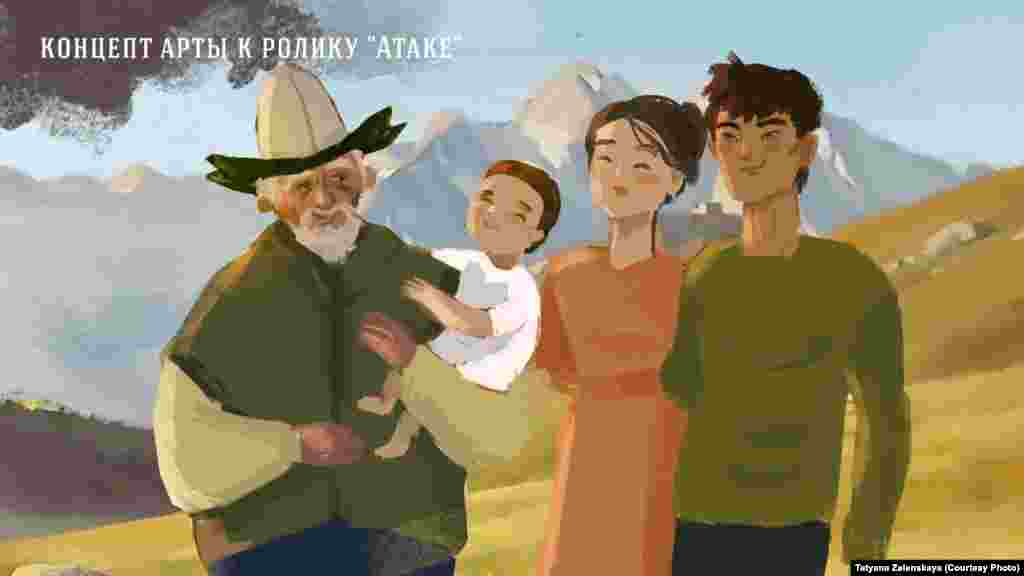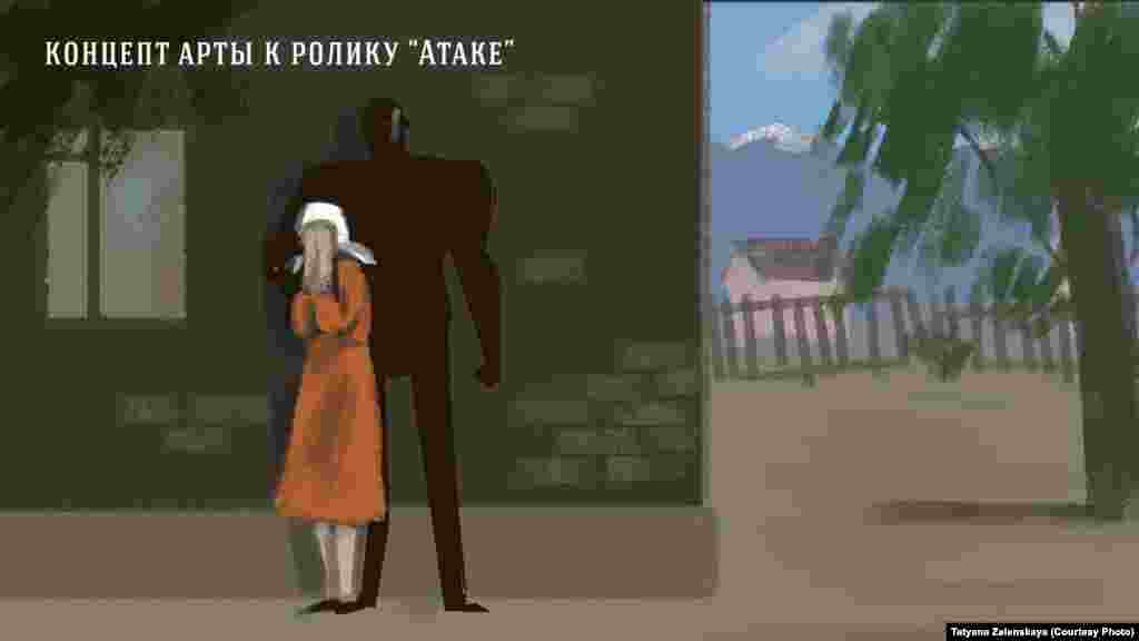 Руководитель ОФ «равные права и возможности» Асылбек Эшиев и художник Татьяна Зеленская реализуют проект «Атаке», направленный на работу с семейным насилием. Главная задача – донести видеоролик до аксакалов, чтобы они могли увидеть его, пропустить через себя и сделать анализ, отмечают участники проекта. Концепт-арты к будущему ролику предоставлены Татьяной Зеленской.