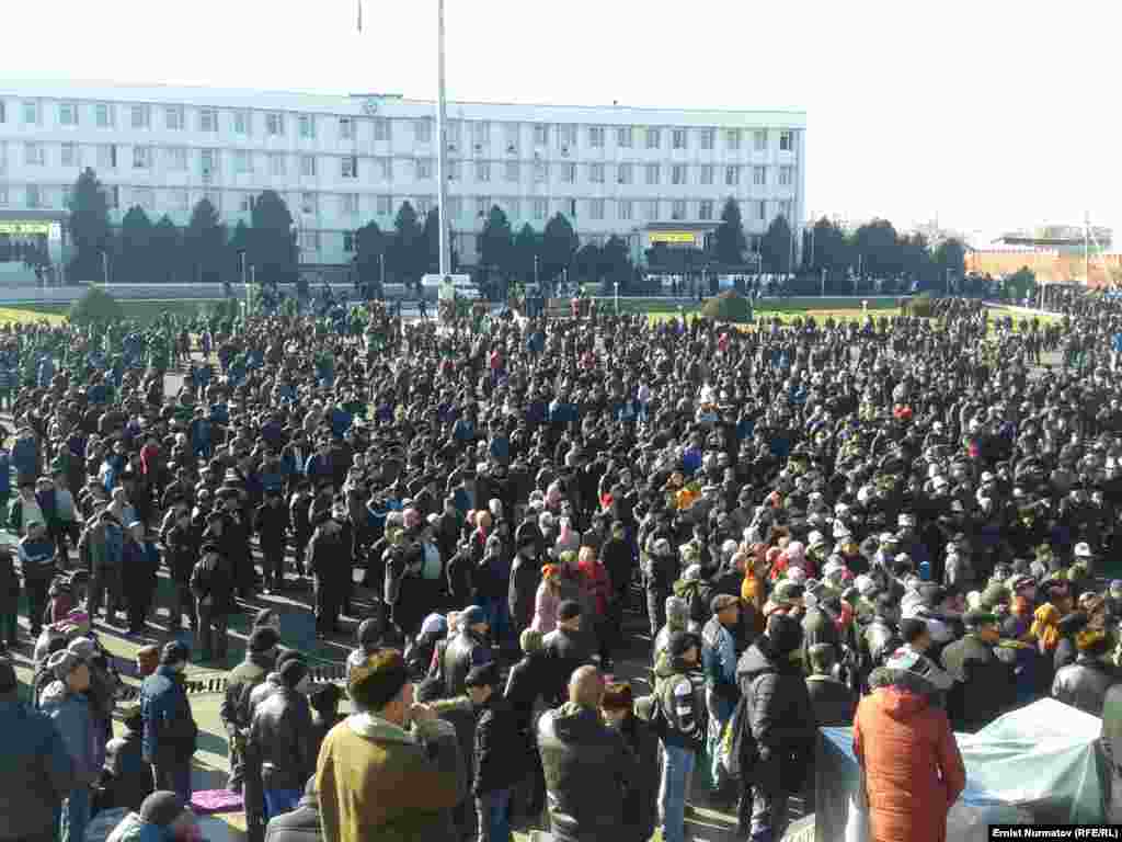 К митингующим на центральной площади Оша присоединились конники. Как сообщает корреспондент «Азаттыка» с места событий, на площадь прибыли около 20 всадников.