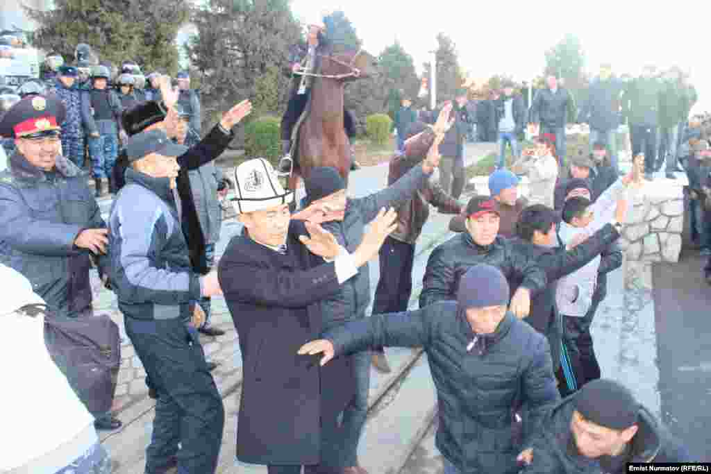 Участники акции протеста требуют освобождения обвиняемого в коррупции депутата Ахматбека Келдибекова. По их словам, на въезде в город со стороны Алайского района стоят еще конники, однако их пока не пускают в Ош. "Азаттык", Кыргызская служба РСЕ\РС