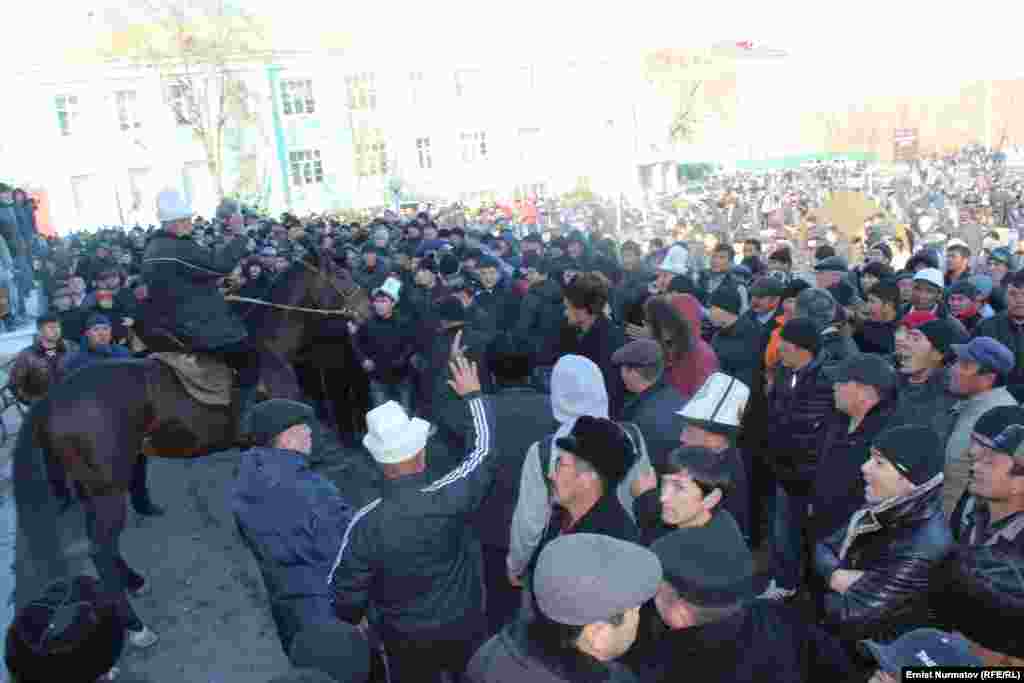 К митингующим на центральной площади Оша присоединились конники. Как сообщает корреспондент «Азаттыка» с места событий, на площадь прибыли около 20 всадников.