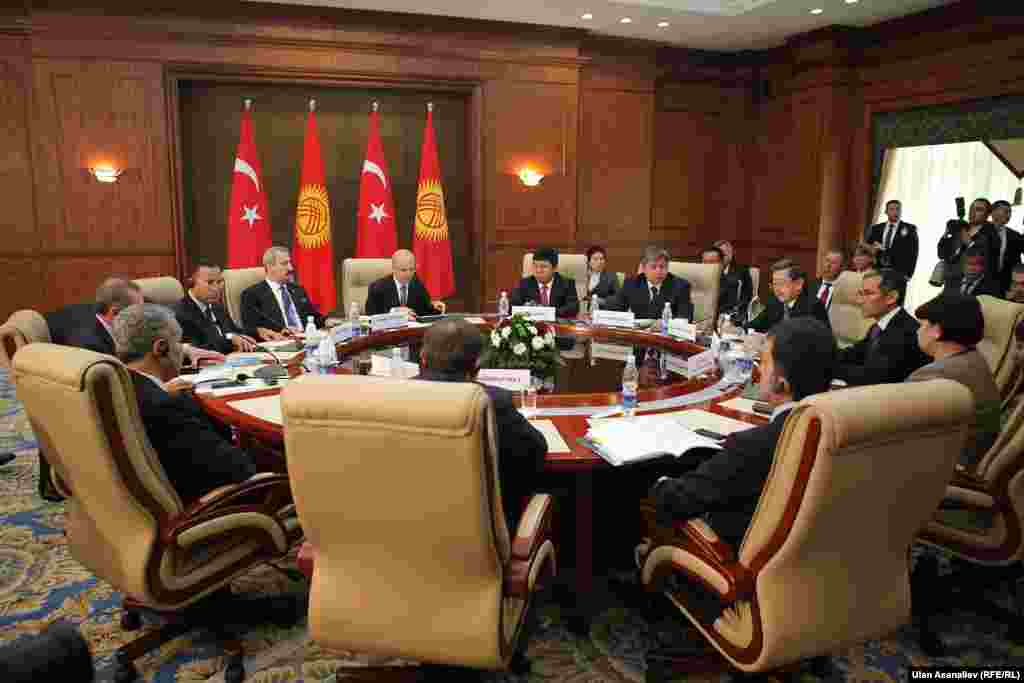 Реджеп Эрдоган проведет серию переговоров с высшим руководством страны. В частности, будут обсуждены вопросы, касающиеся торгово-экономических отношений. По итогам которых будут подписаны ряд двухсторонних соглашений. Кроме этого глава турецкого правительства примет участие во втором заседании Высшего Совета стратегического сотрудничества с участием президента КР Атамбаева. Напомним, что с турецкой стороны сопредседателем данного Высшего Совета является премьер-министр Реджеп Эрдоган. Фоторепортаж "Азаттыка", Кыргызская служба РСЕ\РС