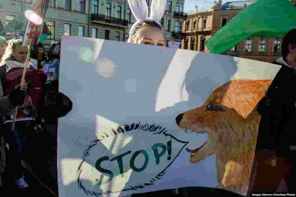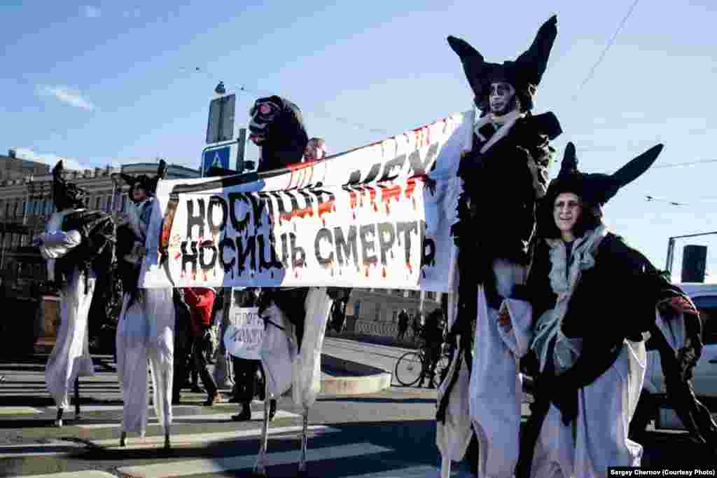 В России растет движение в защиту прав животных. Его участники, в частности, выступают против использования натурального меха в швейной промышленности. В октябре во многих городах России прошли театрализованные акции, напоминающие об ужасах, которые ожидают зверей, попавших в руки скорняков. Одно из таких представлений центр "Вита" провел в Петербурге. 29 ноября в Москве по Самотечной улице пройдет демонстрация, приуроченная ко Всемирной Антимеховой Пятнице, которую отметят более чем в 80 городах по всей планете. Русская служба РСЕ/РС